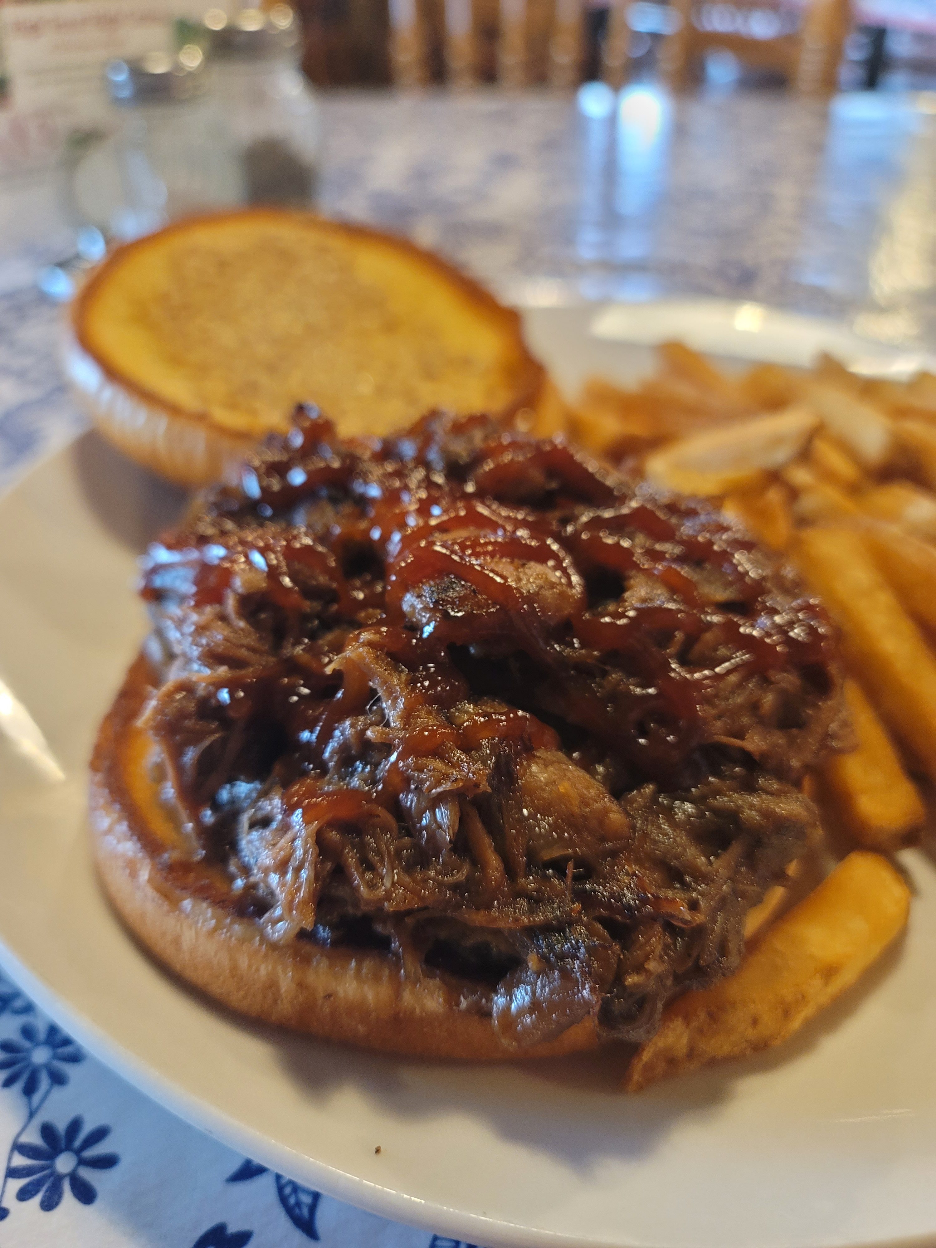Seven ounces of our house smoked pulled pork jazzed up with our blackberry jam infused barbeque sauce. Served with your choice of two sides.